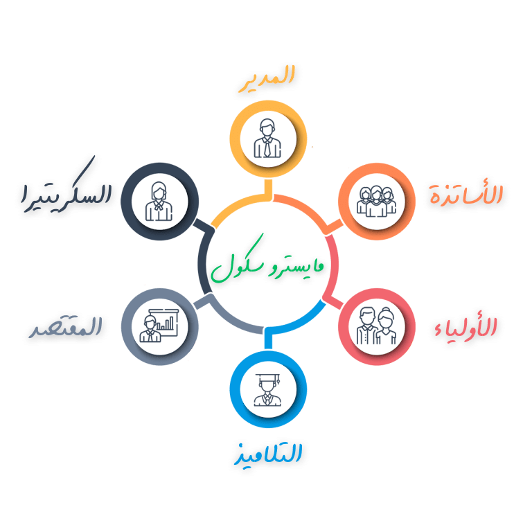 تطبيق الأهل للإطلاع على كافة المستجدات الخاصة بإبنهم المتمدرس و للوصول السهل و الآني لإدارة المدرسة, حيث يمكنهم التطبيق من الإطلاع الغيابات, الفروض , الإختبارات , الواجبات المنزلية و النقاط , كذلك وجبات المطعم المدرسي , تتبع الحافلة المدرسية و التواصل بالرسائل مع الإدارة و استقبال اشعارات في حالة حدوث اي شيء.